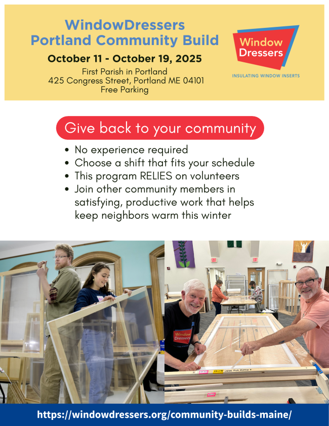 In-person, outside on the side lawn of St. Lawrence Arts, 76 Congress Street.
